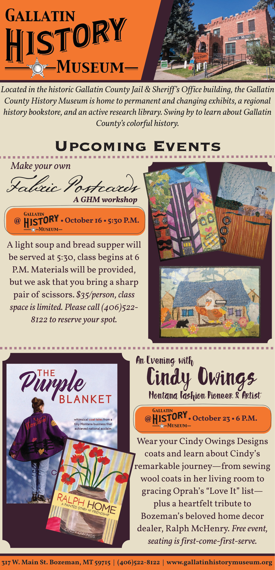 Oct 08, 2025. Gallatin History Museum Galleries & Museums Ads from The Bozeman Daily Chronicle