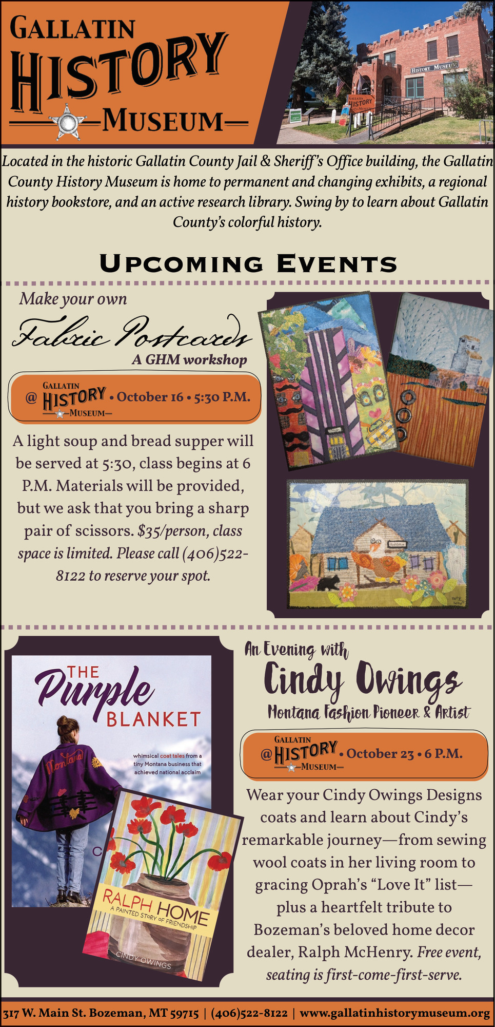 Oct 10, 2025. Gallatin History Museum Galleries & Museums Ads from The Bozeman Daily Chronicle