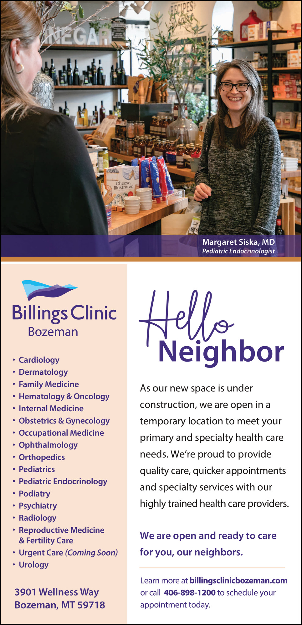 406-898-12003905 Wellness WayBozeman, MT 59718(Billings Clinic Bozeman)