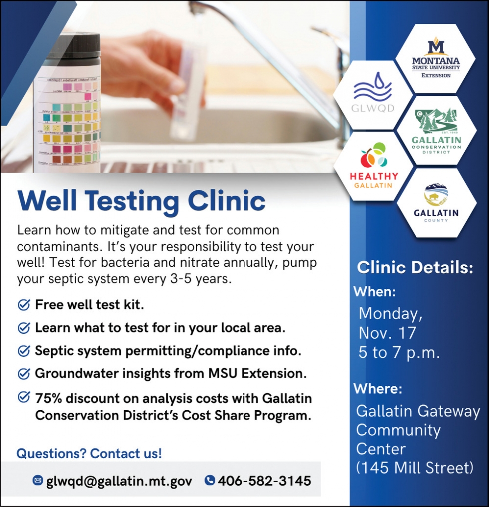 Nov 15, 2025. Well Testing Clinic (November 17, 2025) Events Ads from The Bozeman Daily Chronicle