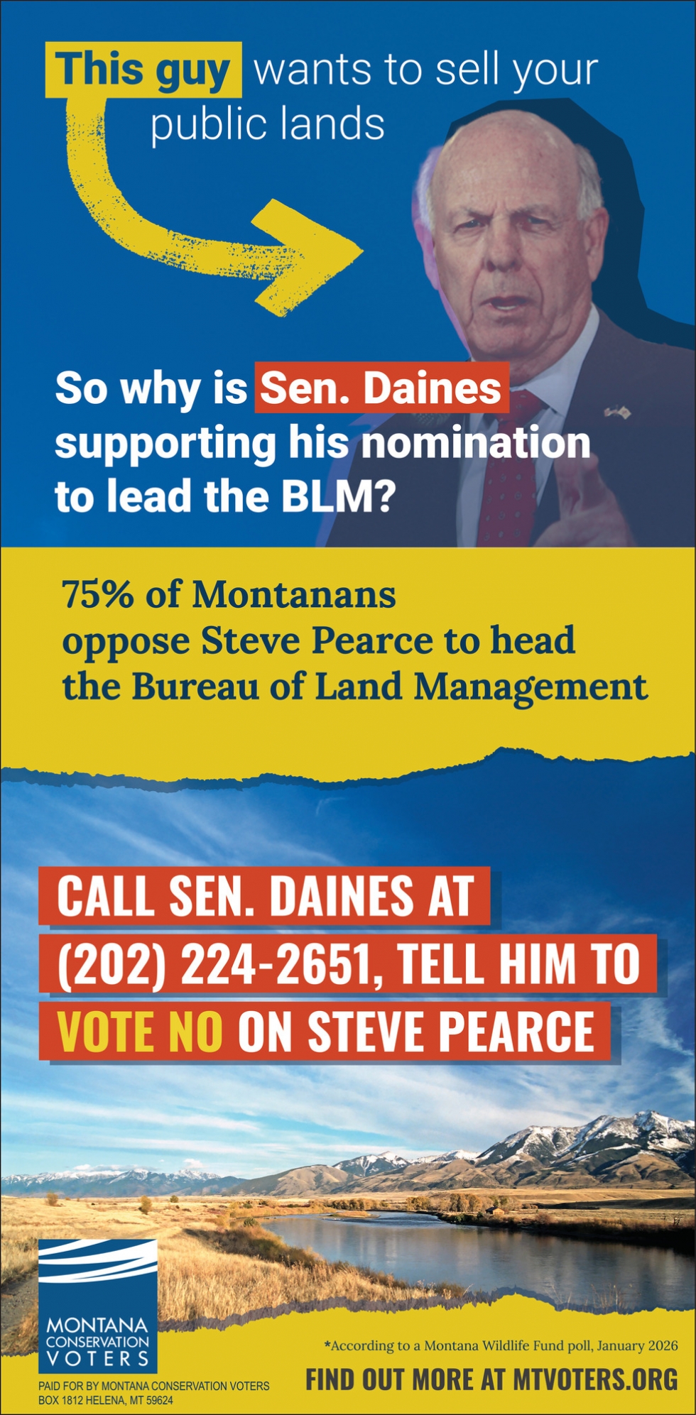 Feb 14, 2026. Montana Conservation Voters Organizations Ads from The Bozeman Daily Chronicle