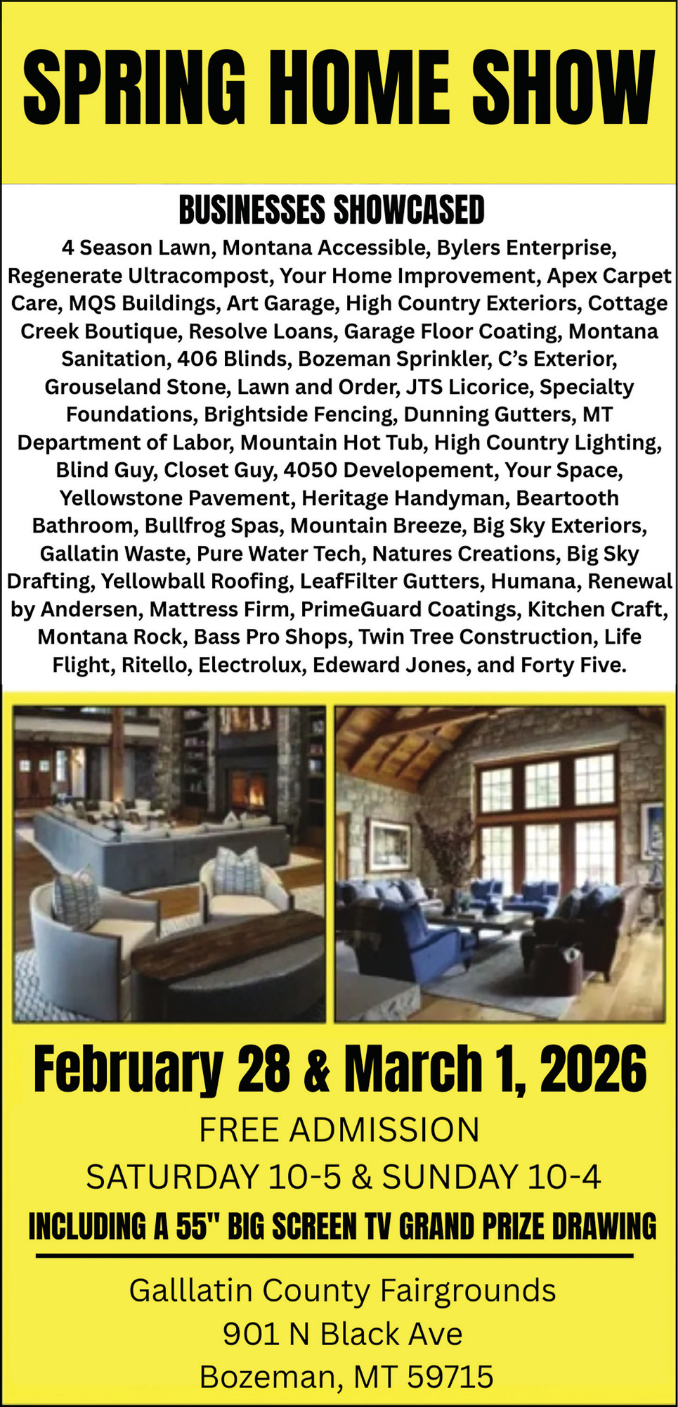 Feb 25, 2026. Spring Home Show (February 28 & March 1, 2026) Events Ads from The Bozeman Daily Chronicle
