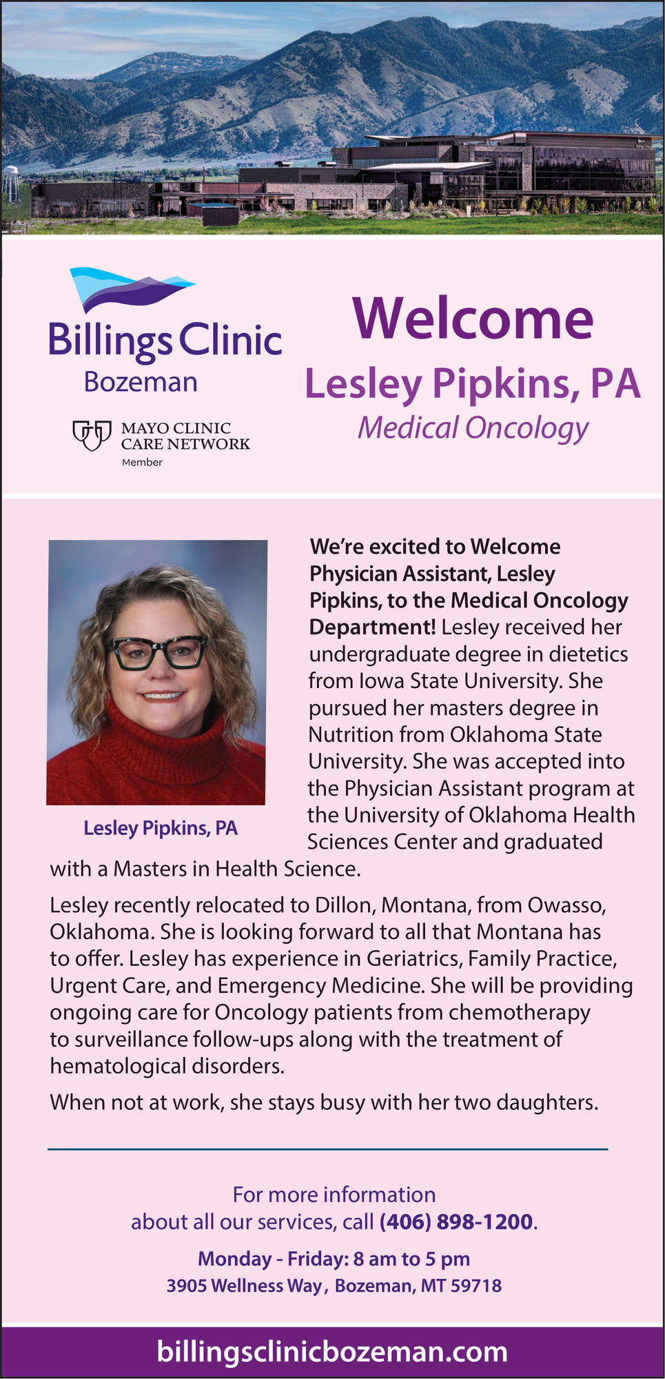 406-898-12003905 Wellness WayBozeman, MT 59718(Billings Clinic Bozeman)
