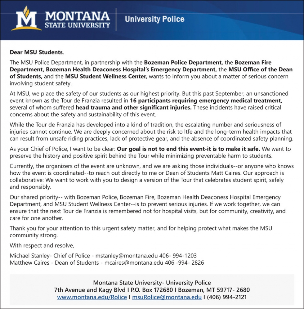 • Student Safety in Bozeman, MT