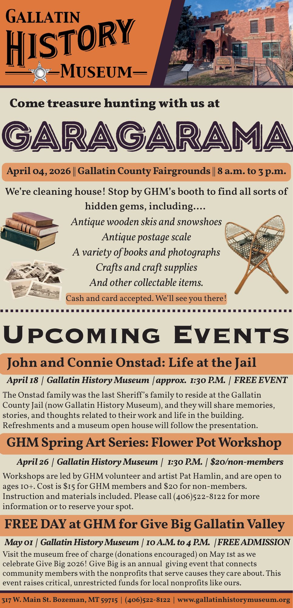 406-522-8122317 W Main StBozeman, MT 59715(Gallatin History Museum)