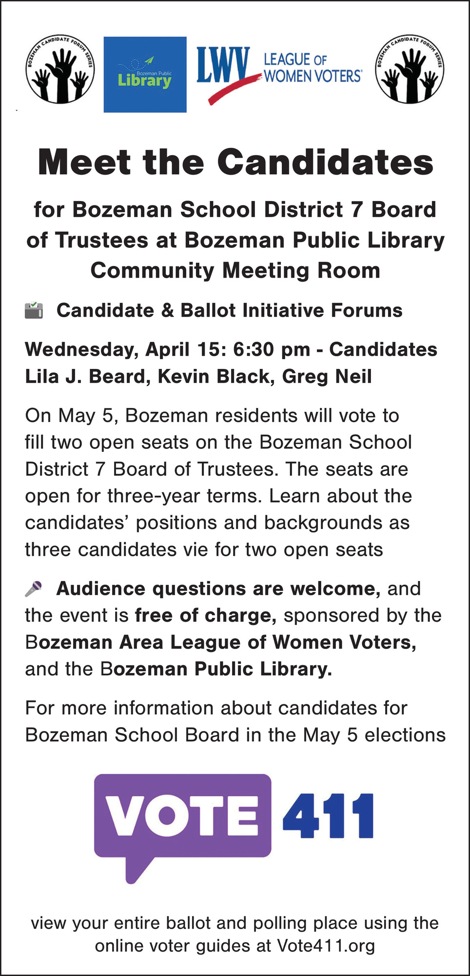 Apr 11, 2026. Vote 411 Government Ads from The Bozeman Daily Chronicle