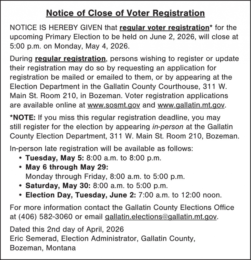 Apr 11, 2026. Eric Semerad Public Notices Ads from The Bozeman Daily Chronicle