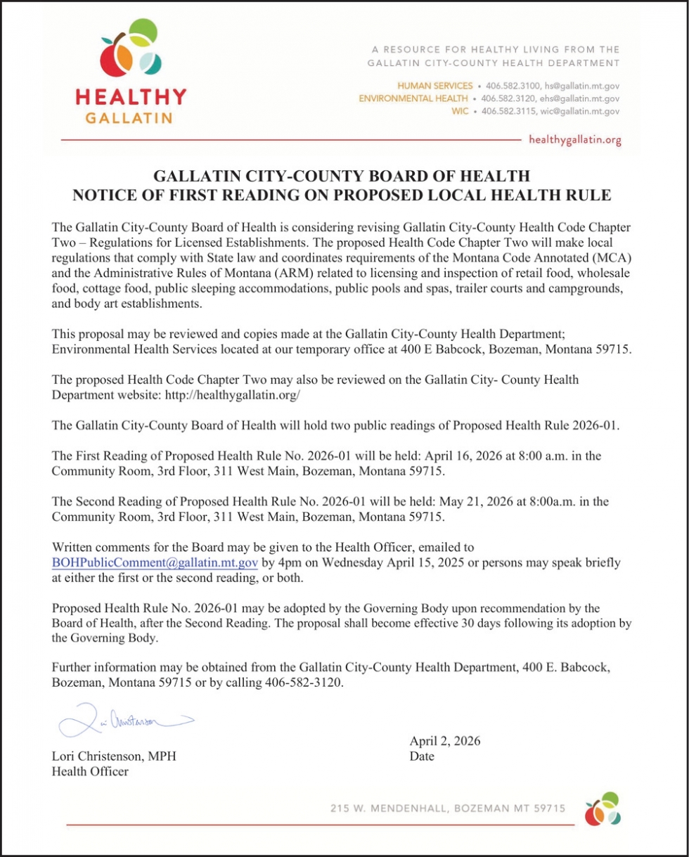 Apr 14, 2026. Healthy Gallatin Events Ads from The Bozeman Daily Chronicle