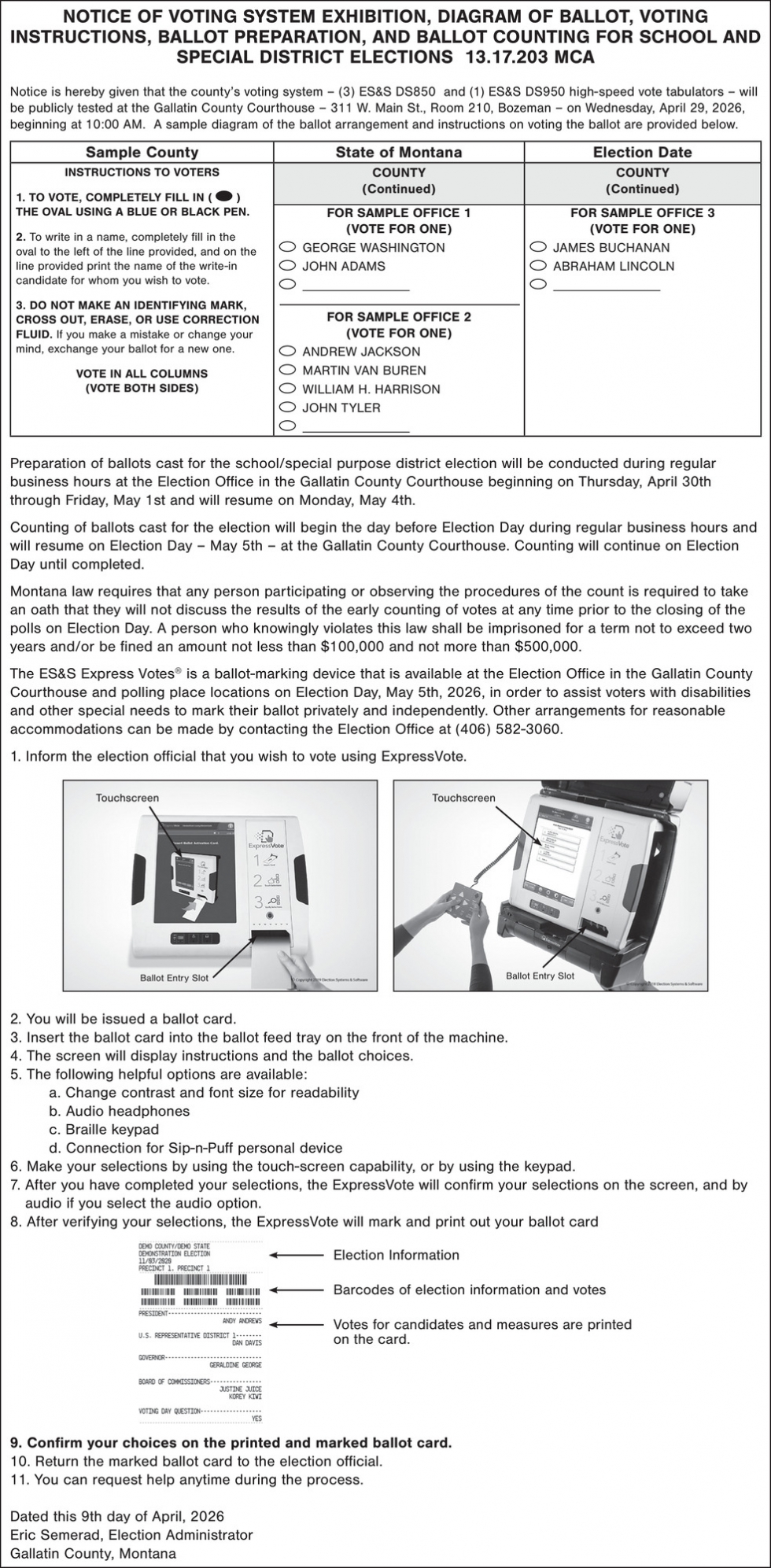 • Public Notice in Bozeman, MT